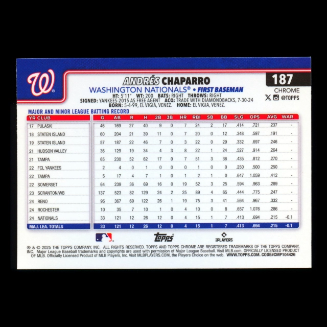 Andrs Chaparro RC 2025 Topps Chrome Rookie Nationals