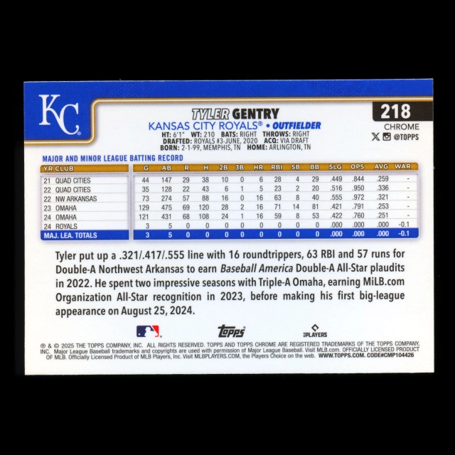Tyler Gentry RC 2025 Topps Chrome Logofractor Rookie Rangers