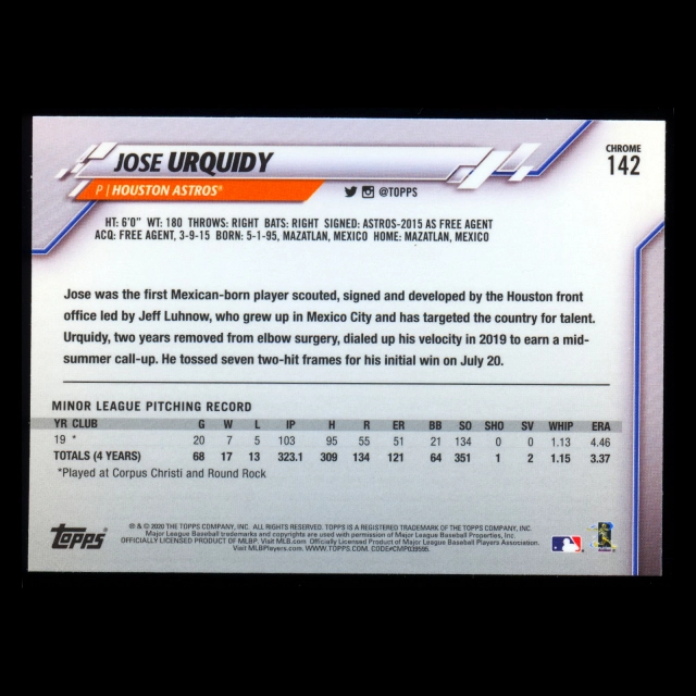 Jose Urquidy RC 2020 Topps Chrome Rookie Astros