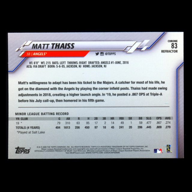 Matt Thaiss RC 2020 Topps Chrome Sepia Refractors Rookie Angels