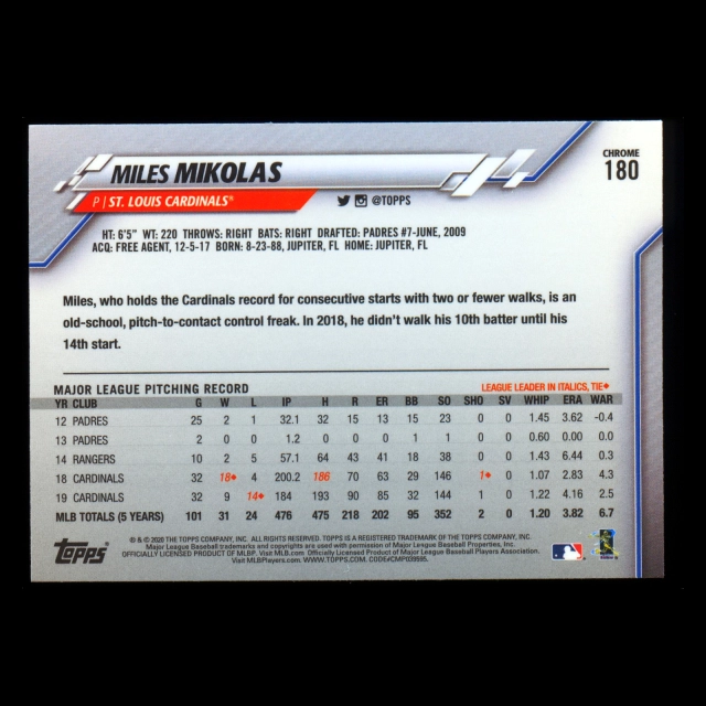 Miles Mikolas 2020 Topps Chrome Cardinals