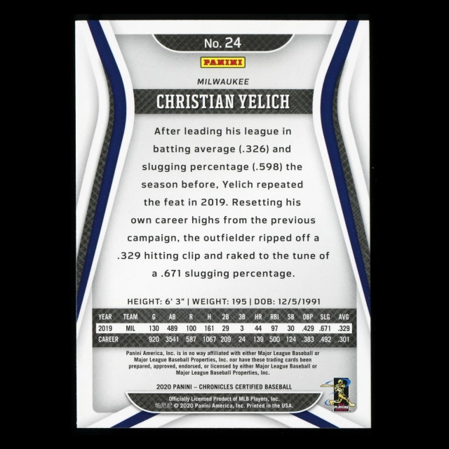 Christian Yelich 2020 Chronicles Certified Green Brewers