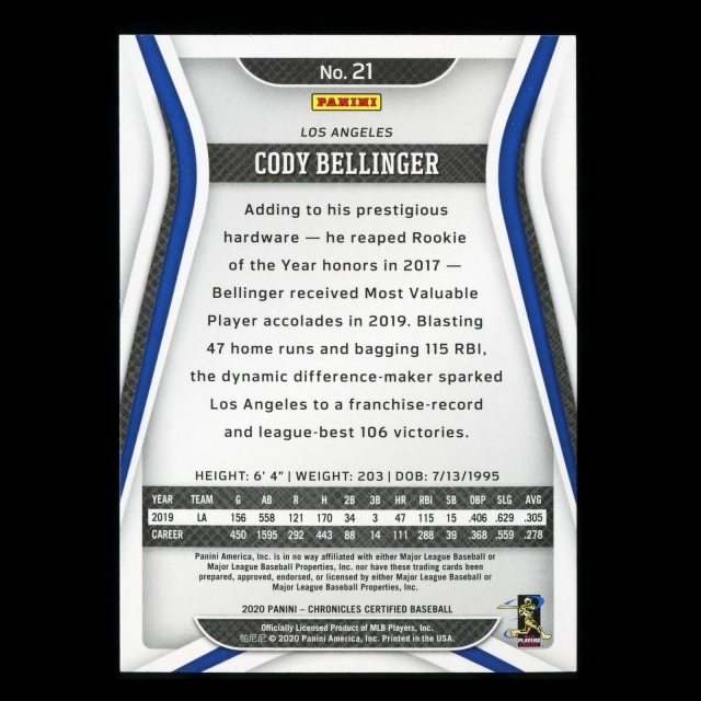 Cody Bellinger 2020 Chronicles Certified Dodgers