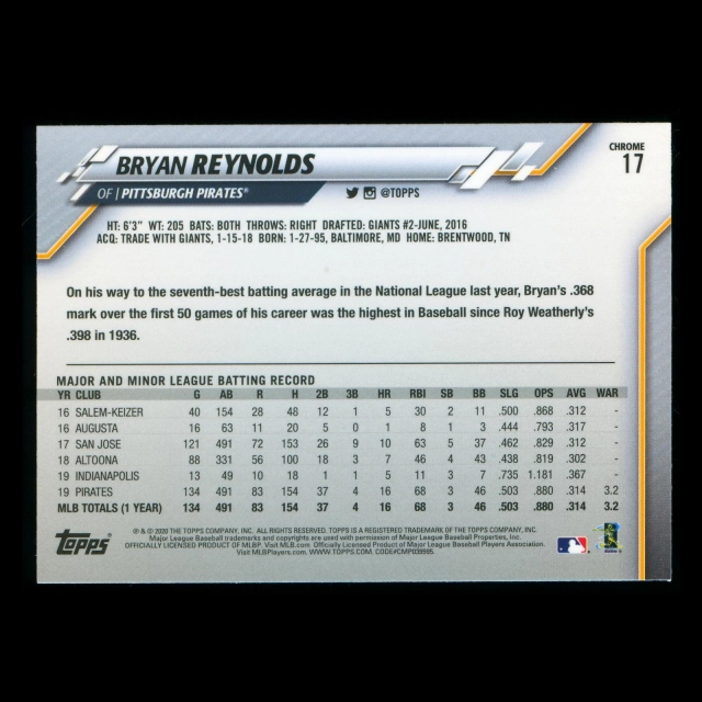 Bryan Reynolds 2020 Topps Chrome All-Star Rookie Pirates