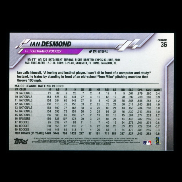 Ian Desmond 2020 Topps Chrome Negative Rockies
