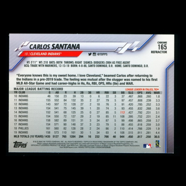 Carlos Santana 2020 Topps Chrome Sepia Refractor Indians