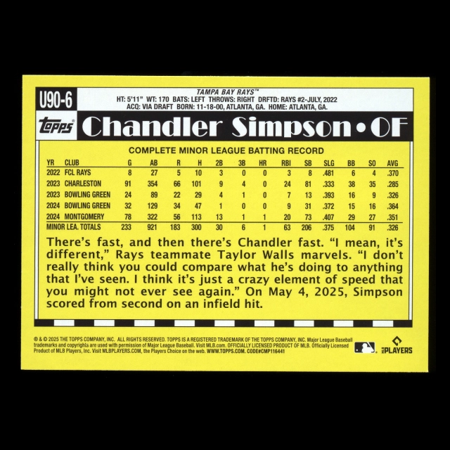 Chandler Simpson RC 2025 Topps Update '90 Topps Rookie Rays