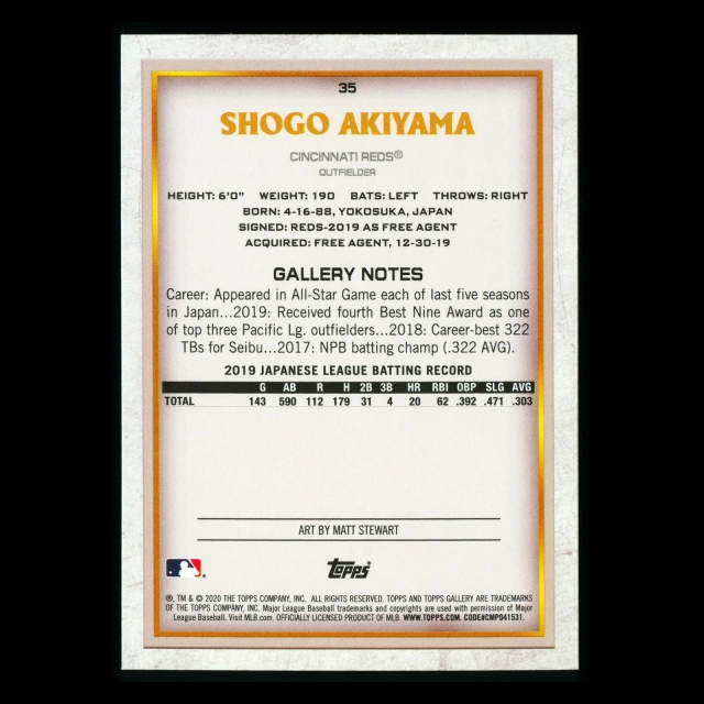 Shogo Akiyama RC 2020 Gallery Rookie Reds