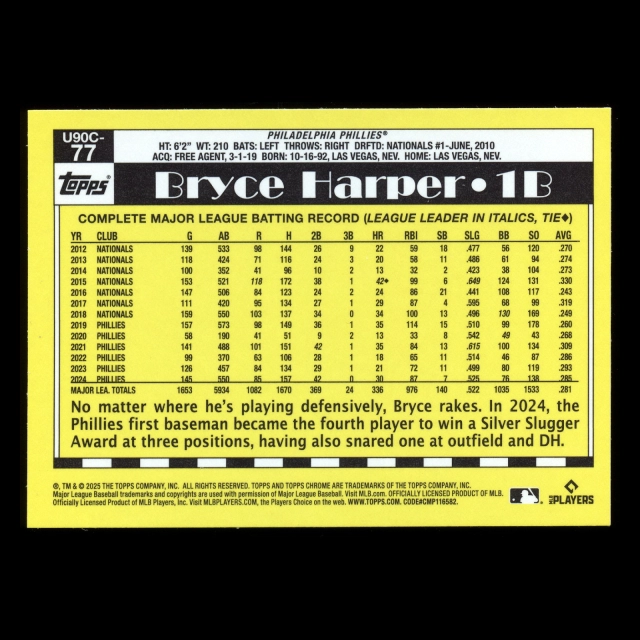 Bryce Harper 2025 Topps Update '90 Topps Silver Pack Chrome Phillies