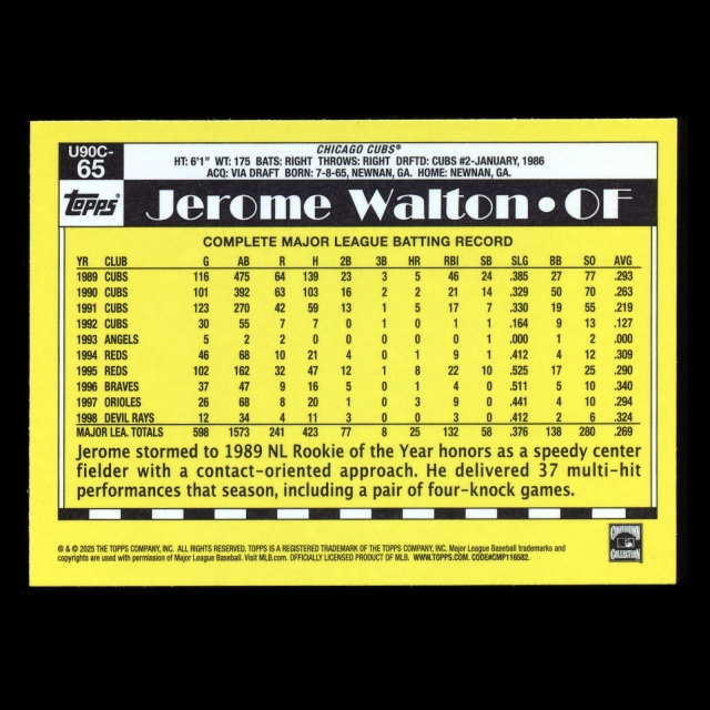 Jerome Walton 2025 Topps Update '90 Topps Silver Pack Chrome Cubs