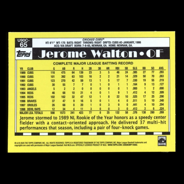 Jerome Walton 2025 Topps Update '90 Topps Silver Pack Chrome Cubs