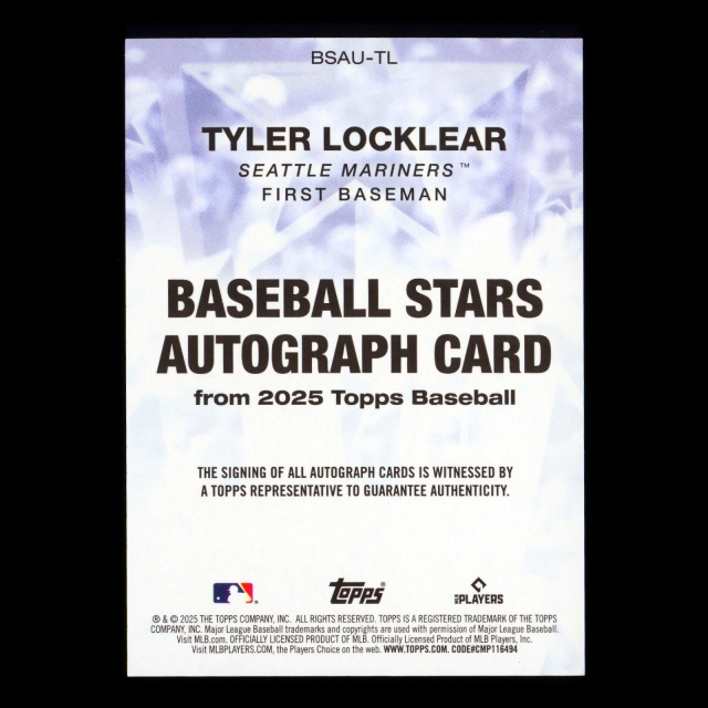 Tyler Locklear RC 2025 Topps Update Baseball Stars Autographs Rookie Mariners