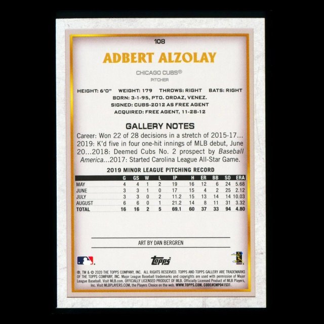 Adbert Alzolay RC 2020 Gallery Rookie Cubs