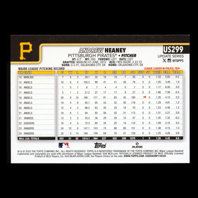 Andrew Heaney 2025 Topps Update Rainbow Foil Pirates