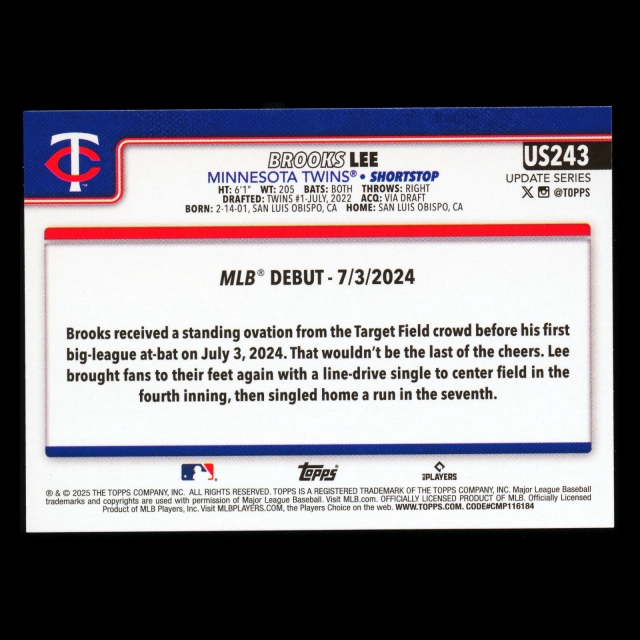 Brooks Lee 2025 Topps Update Rookie Debut Twins