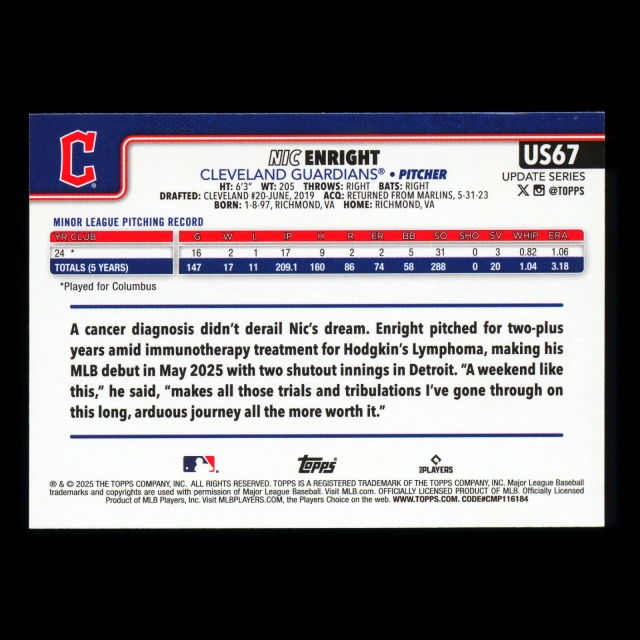 Nic Enright RC 2025 Topps Update Rookie Guardians