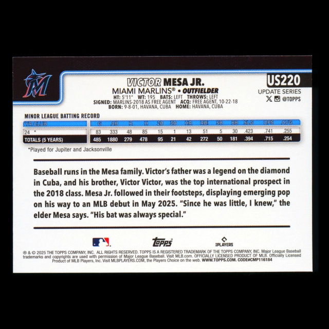 Victor MESA JR. RC 2025 Topps Update Rookie Marlins