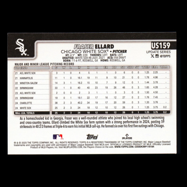 Fraser Ellard RC 2025 Topps Update Rookie White Sox