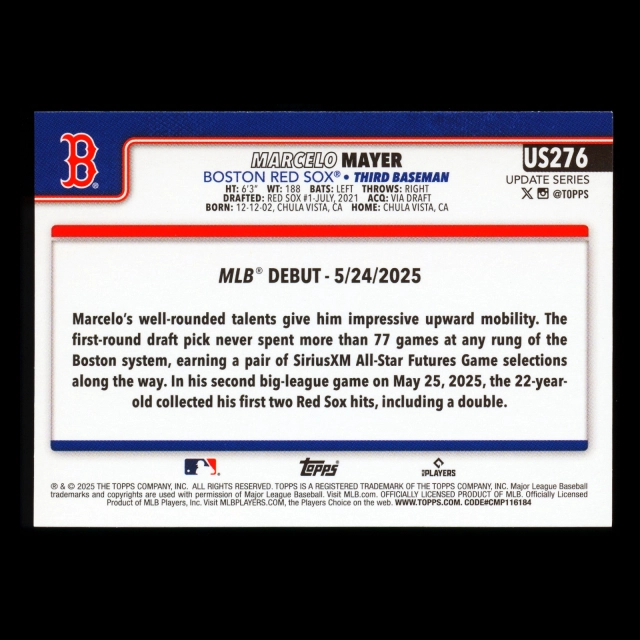 Marcelo Mayer 2025 Topps Update Rookie Debut Red Sox
