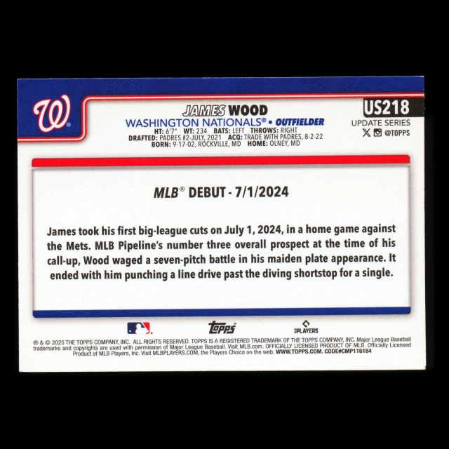 James Wood 2025 Topps Update Rookie Debut Nationals