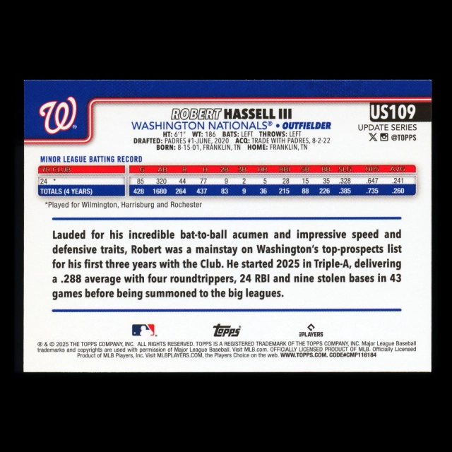 Robert Hassell III RC 2025 Topps Update Rookie Nationals