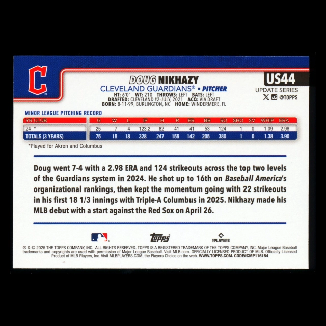 Doug Nikhazy RC 2025 Topps Update Rookie Guardians