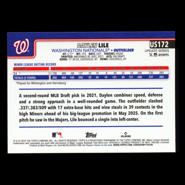Daylen Lile RC 2025 Topps Update Rookie Nationals