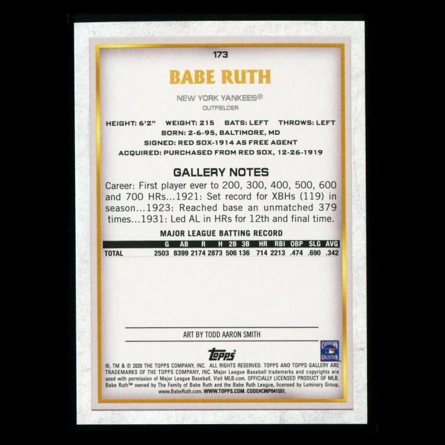 Babe Ruth 2020 Gallery Masters Yankees