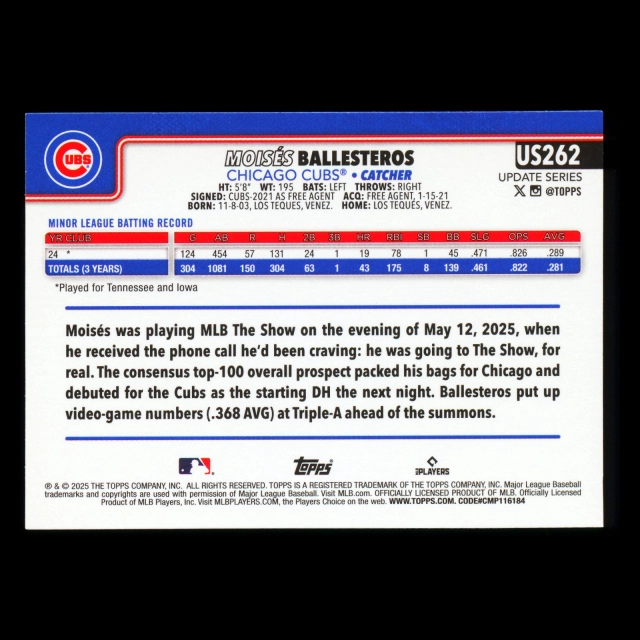 Moiss Ballesteros RC 2025 Topps Update Rookie Cubs