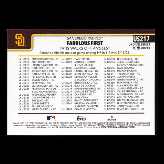 Fernando Tatis Jr. 2025 Topps Update Checklist Padres