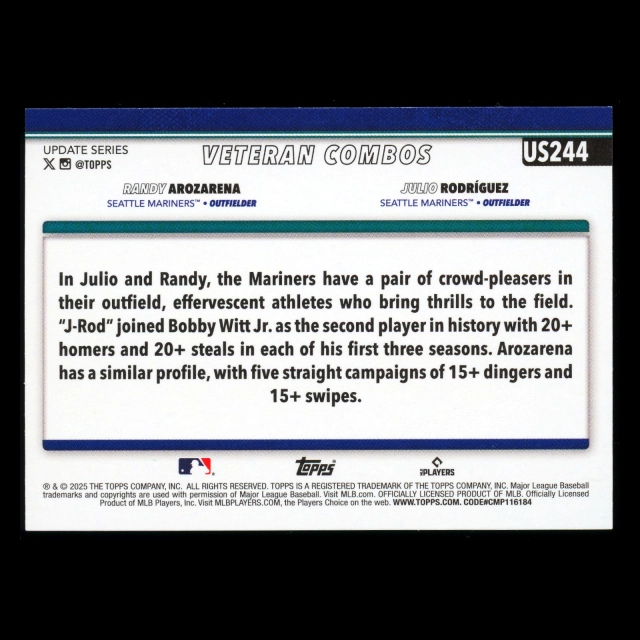 Julio Rodrguez - Randy Arozarena 2025 Topps Update Veteran Combos Mariners
