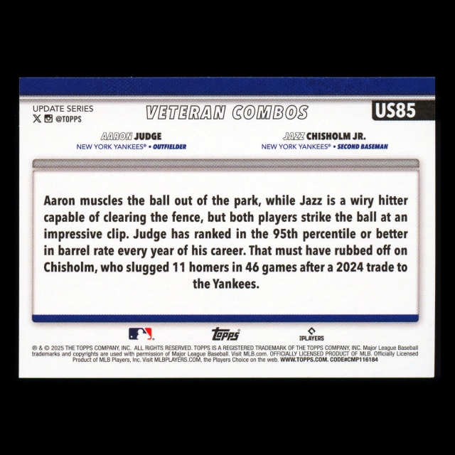 Aaron Judge - Jazz Chisholm Jr. 2025 Topps Update Veteran Combos Yankees