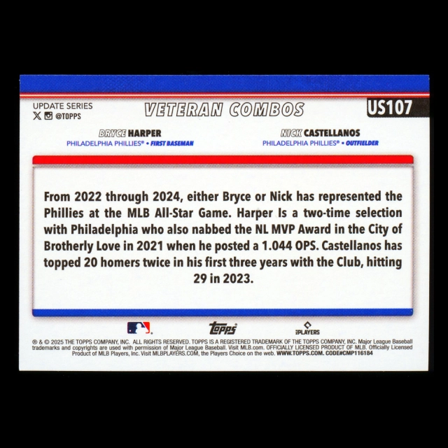 Bryce Harper - Nick Castellanos 2025 Topps Update Veteran Combos Phillies