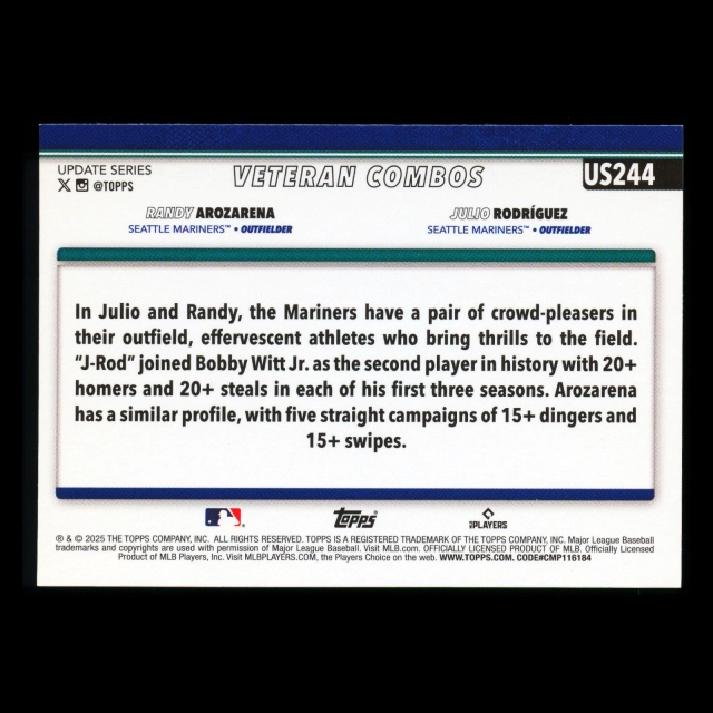 Julio Rodrguez - Randy Arozarena 2025 Topps Update Veteran Combos Mariners