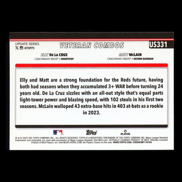 Elly De La Cruz - Matt McLain 2025 Topps Update Veteran Combos Reds