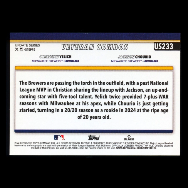 Christian Yelich - Jackson Chourio 2025 Topps Update Veteran Combos Brewers