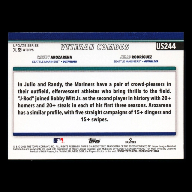 Julio Rodrguez - Randy Arozarena 2025 Topps Update Veteran Combos Mariners