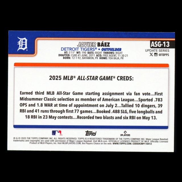 Javier Baez 2025 Topps Update '25 All-Star Game Tigers