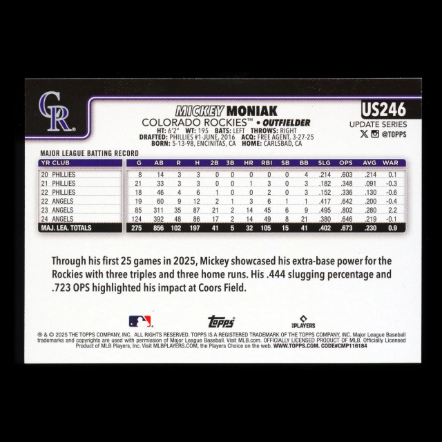 Mickey Moniak 2025 Topps Update Halloween Orange and Black Foil Rockies
