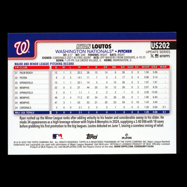 Ryan Loutos RC 2025 Topps Update Orange and Black Foil Rookie Nationals