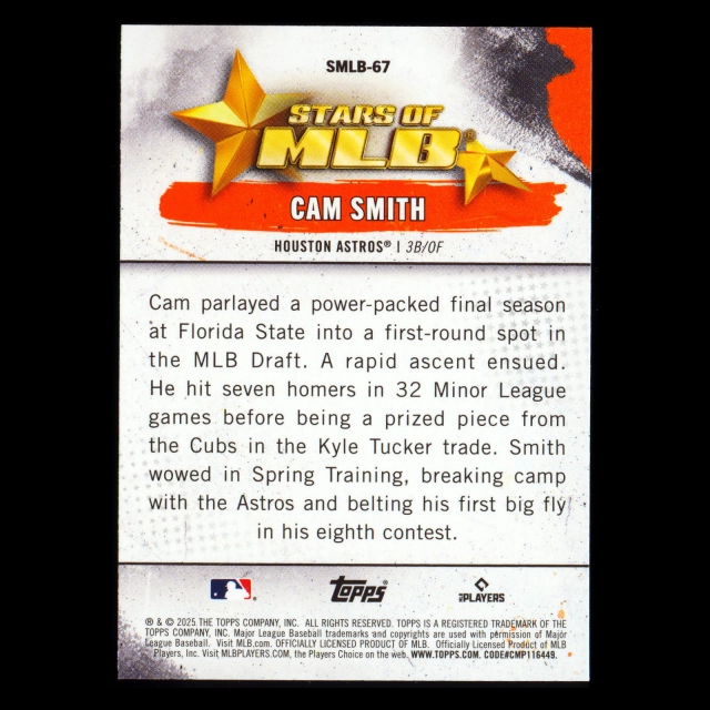 Cam Smith RC 2025 Topps Update Stars of MLB Rookie Astros