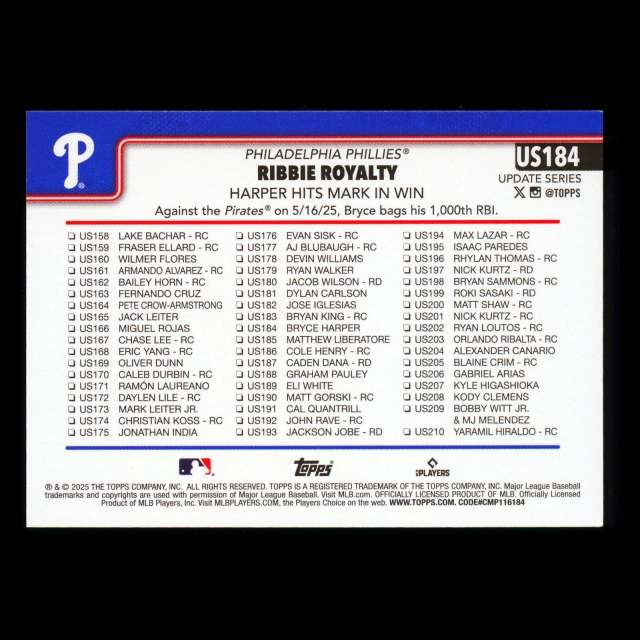 Bryce Harper 2025 Topps Update Checklist Phillies