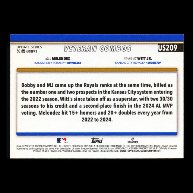MJ Melendez - Bobby Witt Jr. 2025 Topps Update Veteran Combos Royals