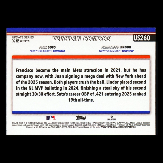 Francisco Lindor - Juan Soto 2025 Topps Update Veteran Combos Mets