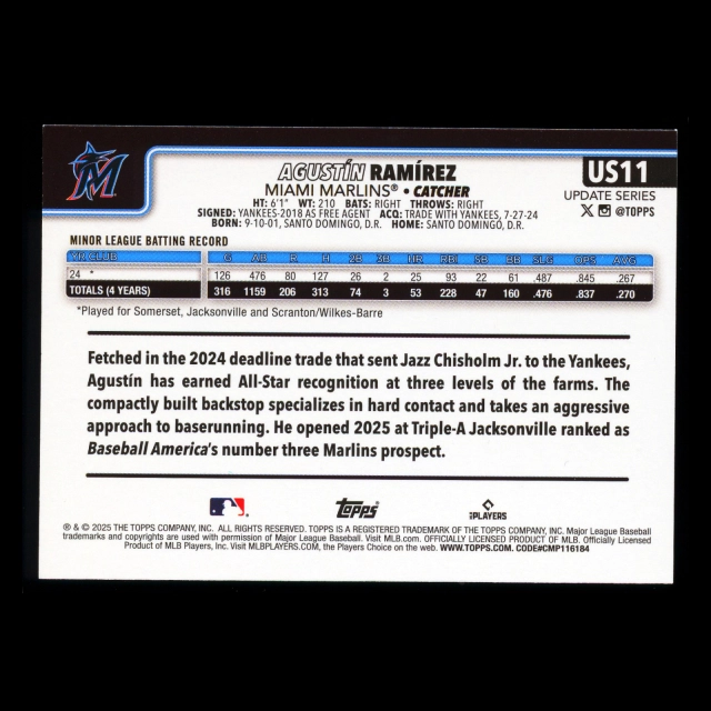 Agustn Ramrez RC 2025 Topps Update Rookie Marlins