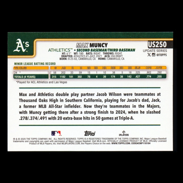 Max Muncy RC 2025 Topps Update Rookie Athletics