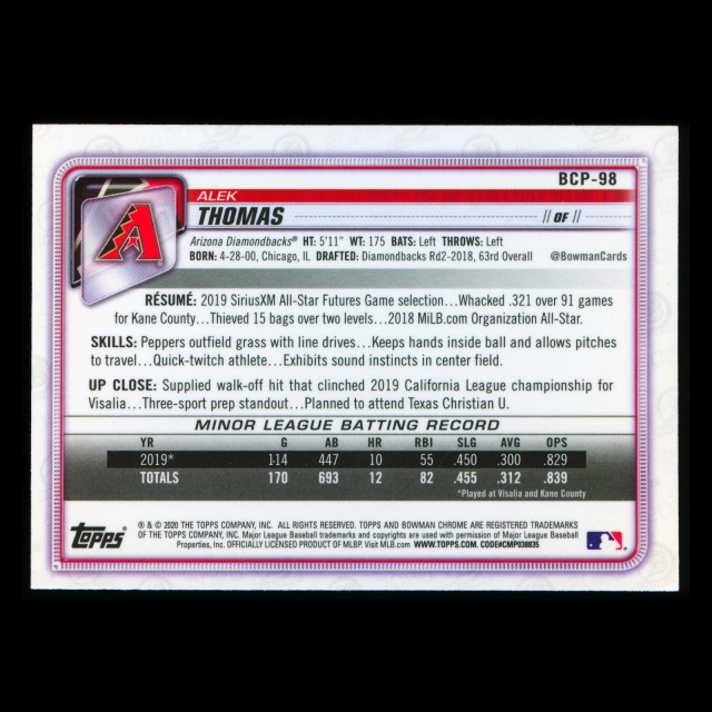 Alek Thomas 2020 Bowman Chrome Prospect Mojo Refractor Diamondbacks