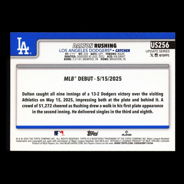 Dalton Rushing 2025 Topps Update Rookie Debut Dodgers