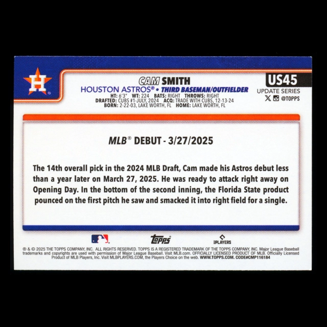 Cam Smith 2025 Topps Update Rookie Debut Astros