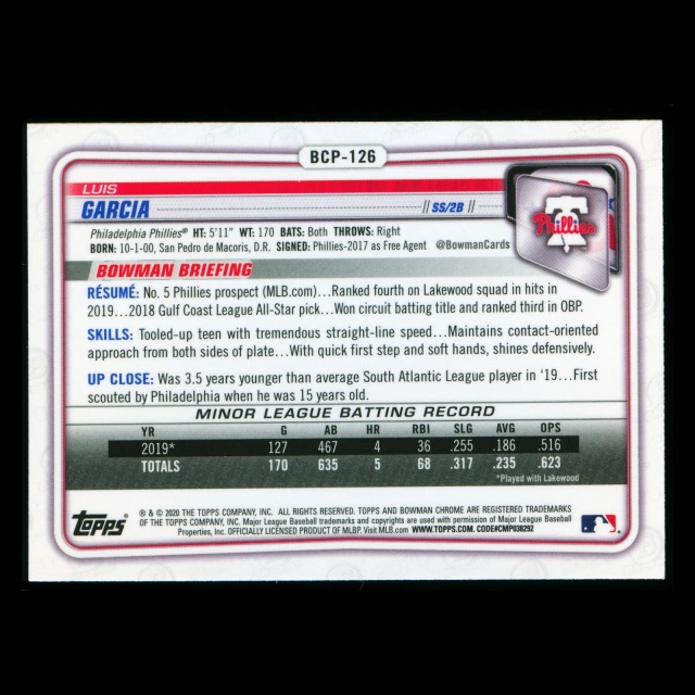 Luis Garcia 2020 Bowman Chrome Prospect Phillies